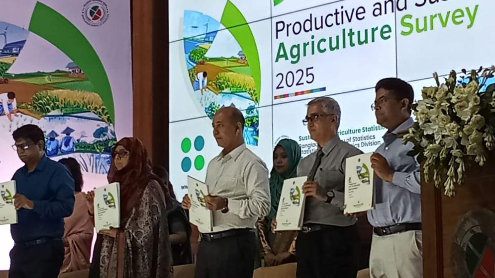 দেশের ৫৫ দশমিক ৬৩ শতাংশ কৃষি জমি উৎপাদনশীল ও টেকসইভাবে ব্যবহার হচ্ছে না। তবে ৪৪ দশমিক ৩৭ শতাংশ জমির টেকসই ব্যবহার হচ্ছে। উৎপাদনশীল ও টেকসই কৃষি জরিপ ২০২৫ এর প্রতিবেদনে এ তথ্য উঠে এসেছে। সোমবার ( ৩০ জুন) প্রথমবারের মতো করা জরিপটির ফলাফল প্রকাশ করে বাংলাদেশ পরিসংখ্যান ব্যুরো (বিবিএস)। রাজধানীর আগারগাঁও এ বিবিএস সম্মেলন কক্ষে এ প্রকাশনা অনুষ্ঠান অনুষ্ঠিত হয়।